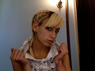 This is me like 4 days ago, I look so odd in thie picture but its ok! My haircut is growing out quite a bit. I made a $500 bet with someone that I could grow my hair out down to below my shoulders without coloring it. I think I can do it. I'm allowed to dye the ends so they match my roots, so I'm doing that in 2 days at school, then the adventures begin.